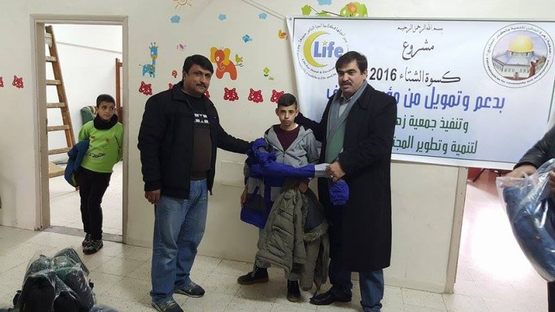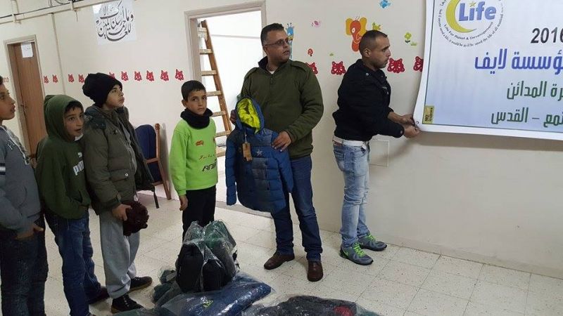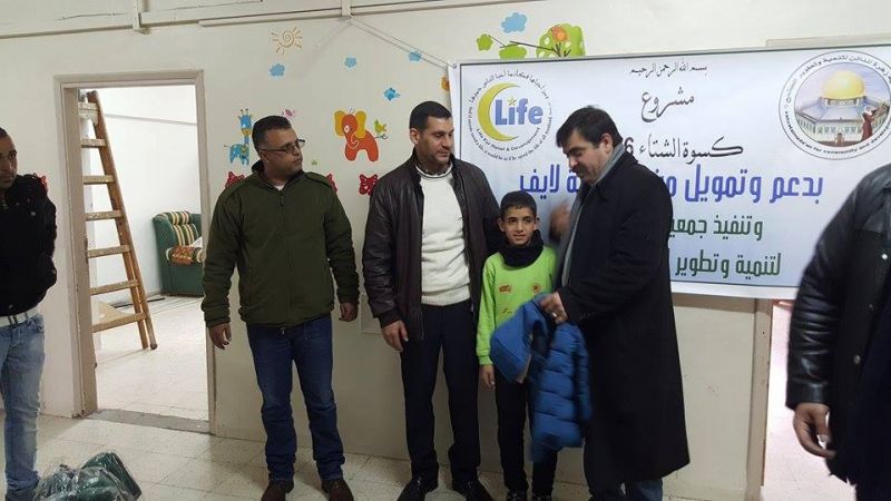 Supported and funded by the Life Foundation and the implementation of the Zahrat Al Mada'en Assembly for the development community of the project winter livery for the 2016, the Assembly director and his accompanying delegation visited the orphanage where they were received by the Deputy Director, Mr. Ahmed E'oissat and Mr. Khaled Abu Rumaila, head of sports activities.