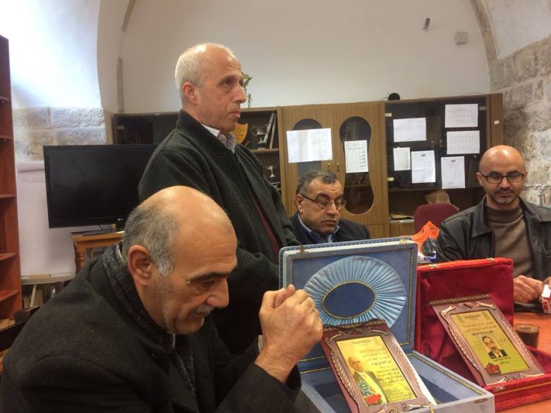 Mr. Abdulhadi Odeh and Mr. Maher Abu Al-Saud at the Industrial Islamic Orphanage School in the Old City of Jerusalem in the presence of the General Manager of the Institution Mr. Moayad Al-Helou and the director of Jerusalem orphans Mr. Omar Gharabli and the family of School in Al-Quds Al-Sharif were honored for reaching retirement age after a long service Over 30 years in the service of orphans, we wish success to them.