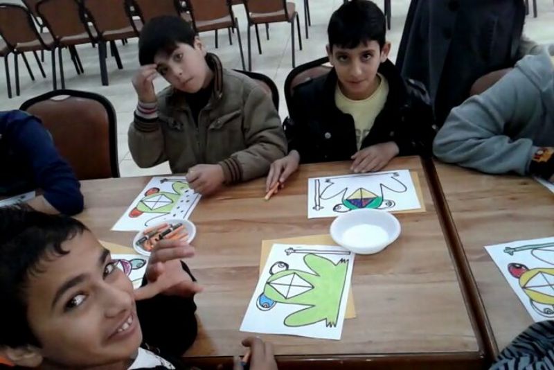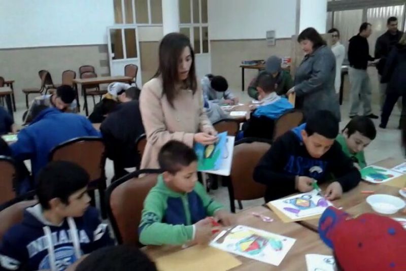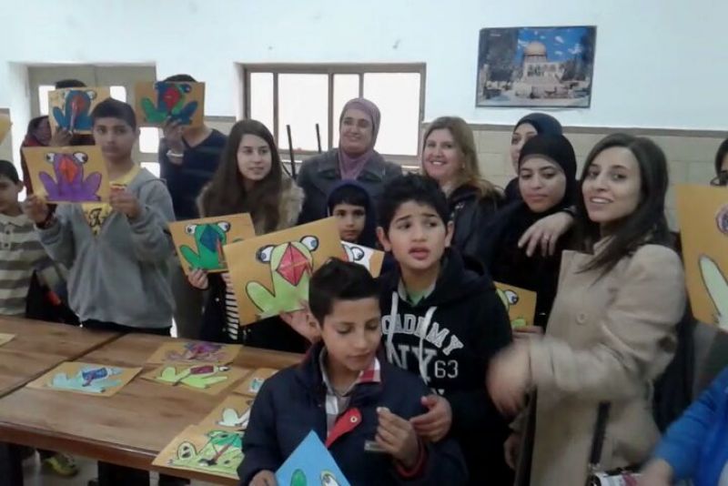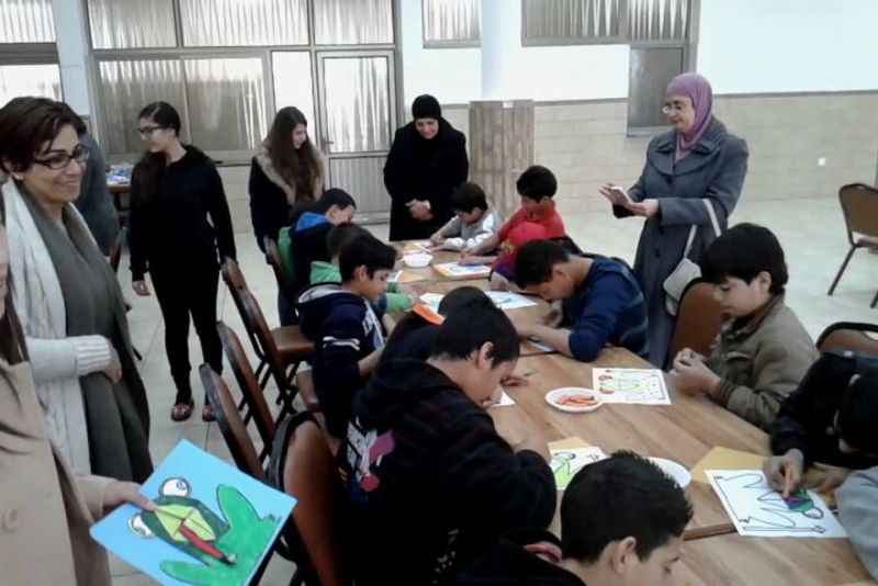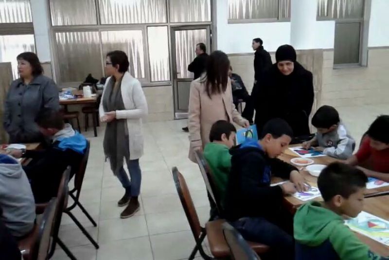 Palestinian Women's Associations participating students from the inner section of orphans and special cases a special activities and apply gifts to them.