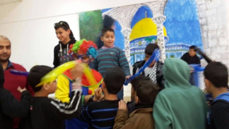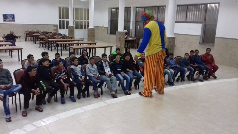 A group of Jerusalem women volunteers under the name Basmat Amal, made a lunch for internal secton students of orphans and social situations in the dining hall, and then followed by entertainment provided by a Clown.