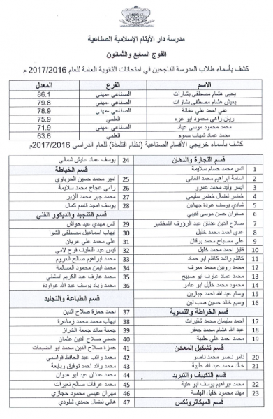 A list of the names of graduates students of the Industrial Islamic Orphanage School for the academic year 2016/2017.